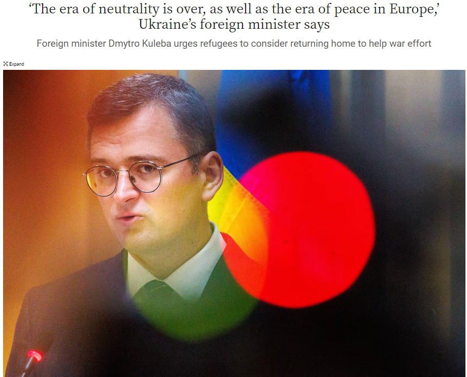 22.48 Министр иностранных дел Дмитрий Кулеба призвал украинцев, которые выехали из Украины во время войны, вернуться и помочь защищать Родину.