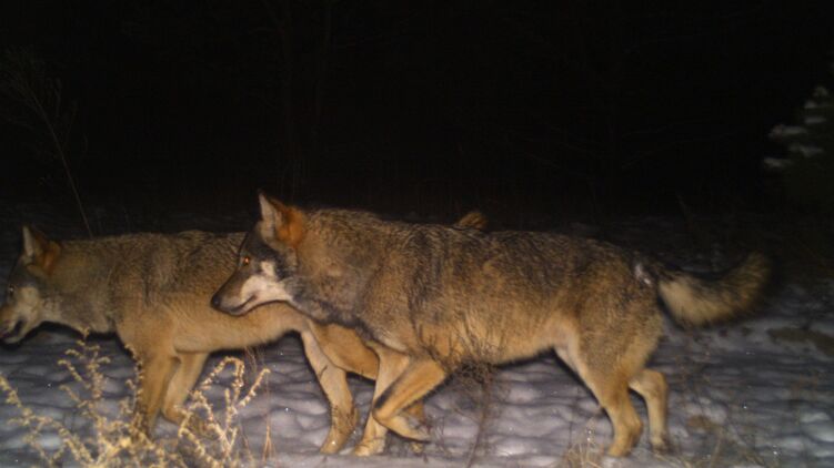 Чернобыльский радиационно-экологический биосферный заповедник опубликовал фото волков в зоне отчуждения ЧАЭС, сделанное фотоловушкой.