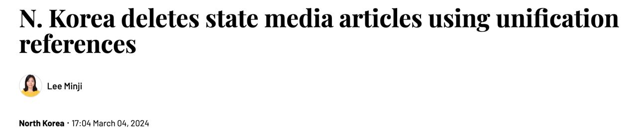 Северная Корея удаляет статьи своих государственных СМИ, в которых упоминается возможность объединения с Южной.