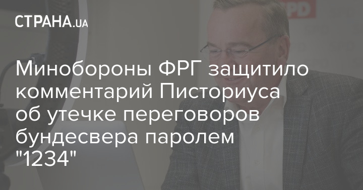Минобороны ФРГ защитило комментарий министра Бориса Писториуса об утечке переговоров бундесвера паролем "1234".