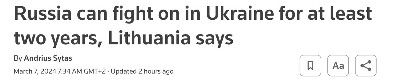 В Литве считают, что РФ сможет интенсивно воевать с Украиной еще как минимум два года - Reuters