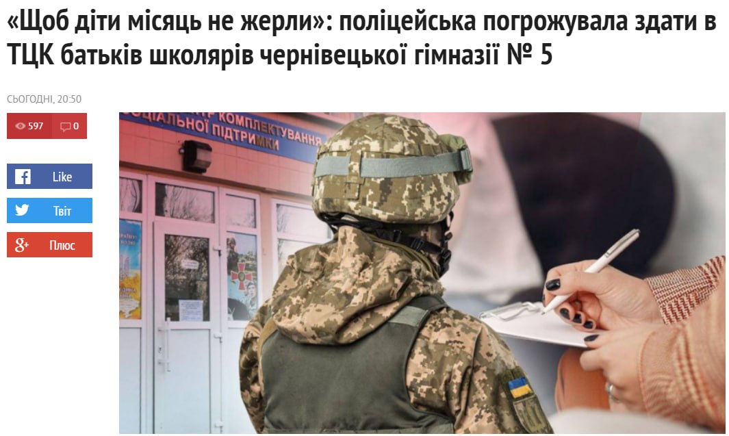 Полицейская угрожала сдать в ТЦК родителей учащихся черновицкой гимназии №5.