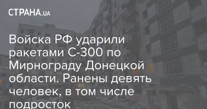 Россияне ночью ударили ракетами С-300 по Мирнограду Покровского района Донецкой области. Ранены девять человек, в том числе подросток, повреждены девять многоэтажек и 27 автомобилей.