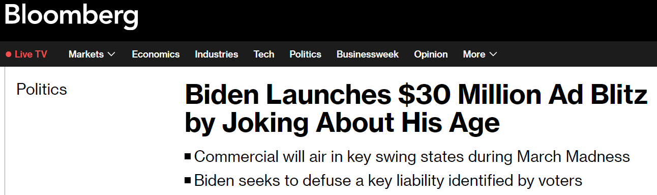О возрасте Байдена как кандидата в президенты беспокоятся более 80% американцев, опрошенных в ключевых штатах, показали результаты опроса Bloomberg News, опубликованные в феврале.