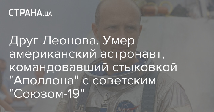 Друг Леонова. Умер американский астронавт, командовавший стыковкой "Аполлона" с советским "Союзом-19"