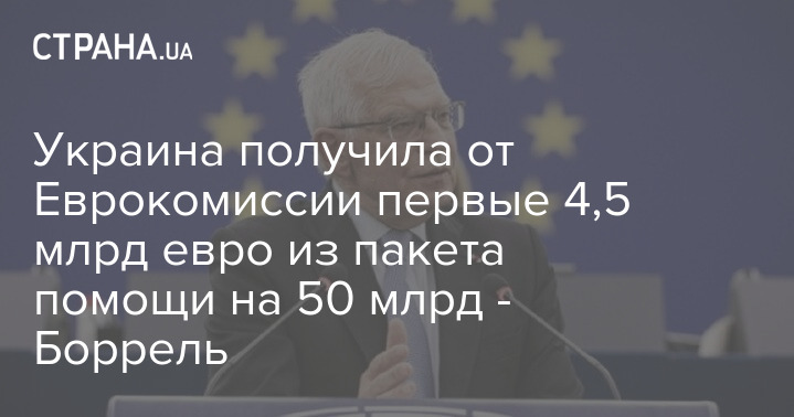 Украина получила от Еврокомиссии первые 4,5 млрд евро из пакета помощи на 50 млрд - Боррель