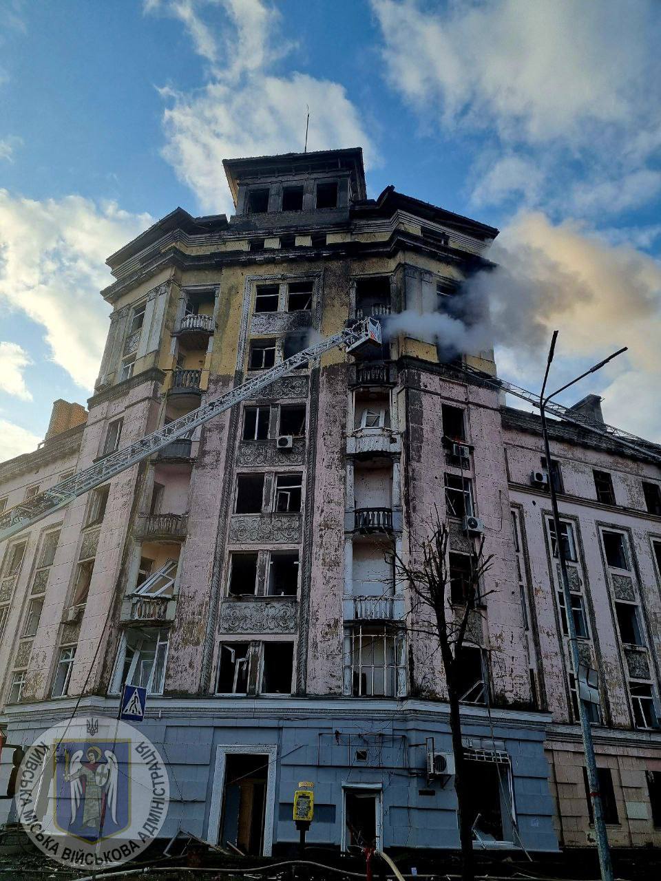 В Киеве ликвидировали пожары после ракетной атаки РФ. Фото и видео последствий