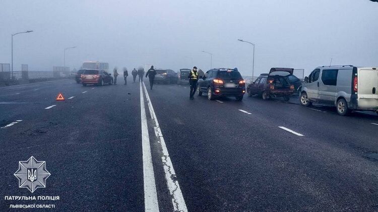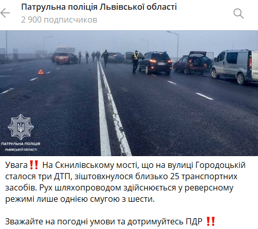 Утром 21 марта во Львове произошла масштабная авария. На Скниловском мосту столкнулись около 25 автомобилей.