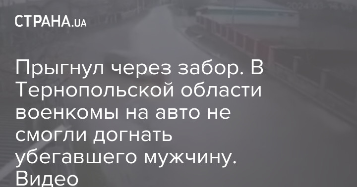 В сети появилось видео, как утверждается, из Тернопольской области, где мужчина сбежал через забор от сотрудников ТЦК, которые преследовали его на автомобиле.