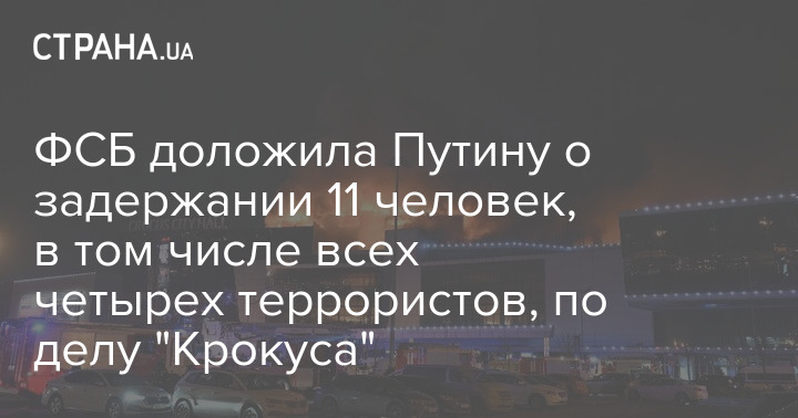 ФСБ доложила Путину о задержании 11 человек, в том числе всех четырех террористов, по делу "Крокуса"