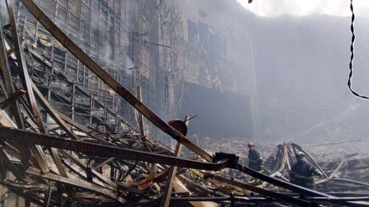 Концертный зал "Крокуса" после пожара. Фото: Telegram/МЧС РФ