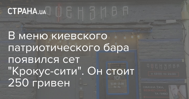 Киевский арт-бар "Офензива", расположенный на Подоле, ввел в свое меню сет "Крокус-сити" - по названию концертного зала в Москве, где  позавчера вследствие теракта перед концертом группы "Пикник" погибли более 130 человек.
