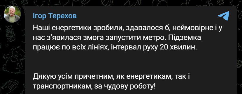 08.27 В Харькове запустили метро, которое не работало после ракетного удара 22 марта.