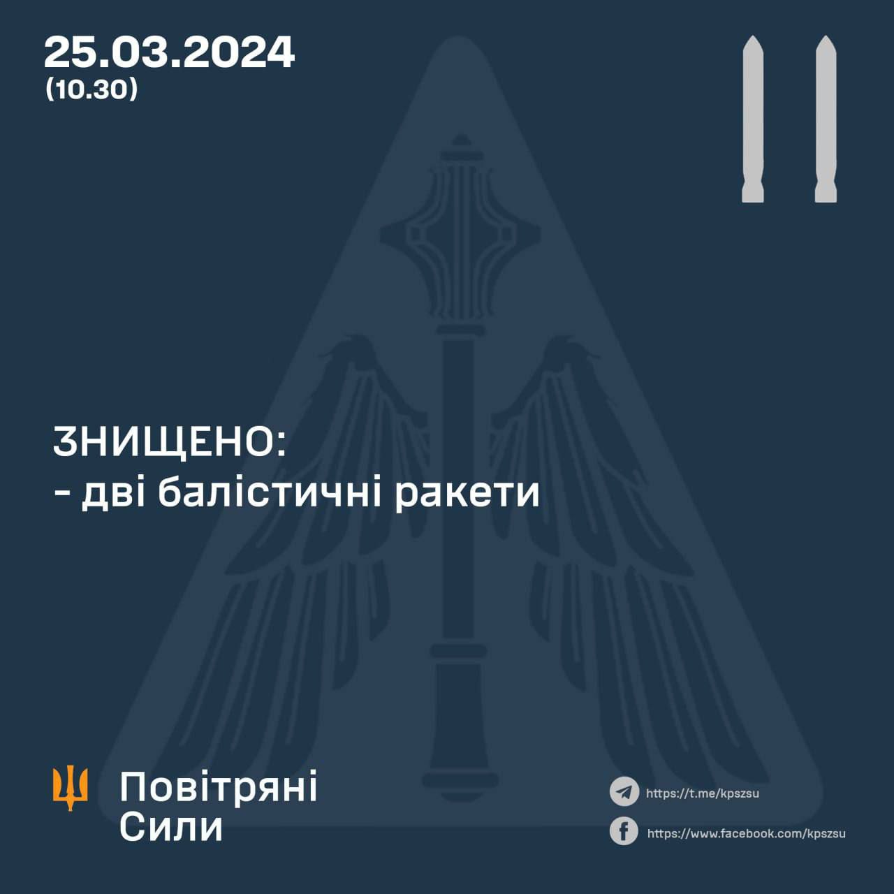 11.22 Воздушные силы заявляют, что сбили над Киевом две баллистические ракеты.
