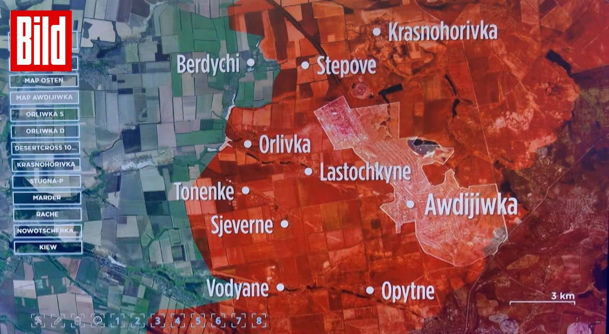 Ранее он писал, что ВСУ с трудом держат оборону на линии Бердычи — Семёновка — Орловка — Тоненькое западнее Авдеевки, рубеж обороны постепенно смещался на запад. Теперь, по данным аналитика, Тоненькое и Орловка полностью захвачены российскими войсками. Бои продолжаются лишь за Бердычи.