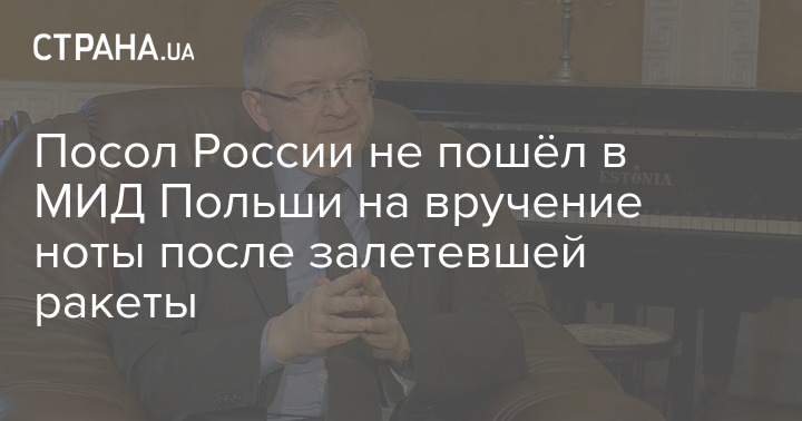 Посол России не пошёл в МИД Польши на вручение ноты после залетевшей ракеты