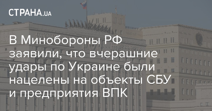 В Минобороны РФ заявили, что вчерашние удары по Украине были нацелены на объекты СБУ и предприятия ВПК