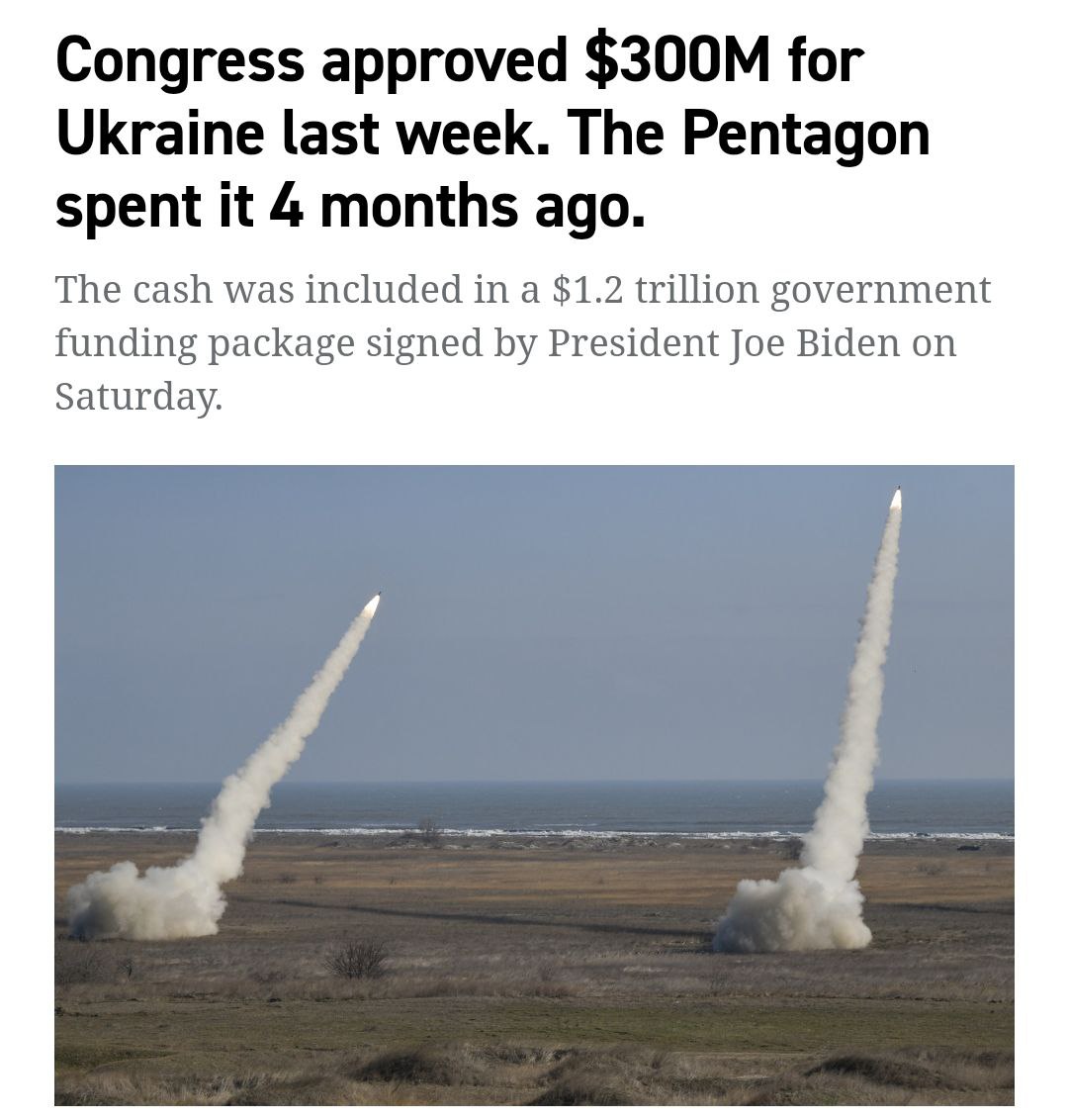 300 миллионов, заложенных на "Инициативу содействия безопасности Украины", вошли в проголосованный Конгрессом и подписанный президентом США Джо Байденом в субботу бюджет.