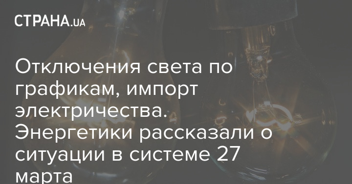 Компания "Укрэнерго" рассказала о ситуации в энергетической системе Украины 27 марта. В регионах, пострадавших от масштабной атаки по объектам энергетической инфраструктуры в минувшую пятницу, уже есть возможность запитать всех потребителей.