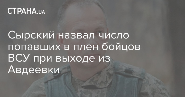 Главнокомандующий ВСУ Александр Сырский назвал официальное количество солдат, попавших в плен при отступлении из Авдеевки.