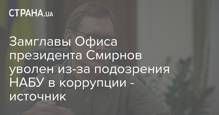Замглавы Офиса президента Смирнов уволен из-за подозрения НАБУ в коррупции - источник