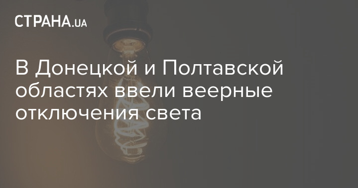 Донецкая область переходит на веерные отключения электричества. Также заявляется о переходе на веерные отключения в Полтавской области.