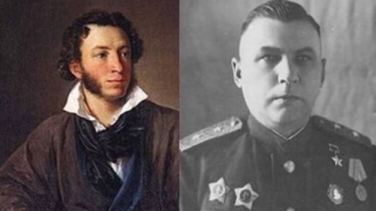 Александр Пушкин (слева) и Ефим Пушкин. Коллаж: Telegram/DecolonizationUkraine