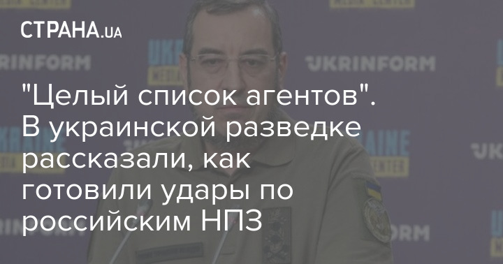 В Главном управлении разведки Министерства обороны Украины заявили, что имели целый список агентов, которые помогли осуществить атаки на российские нефтеперерабатывающие заводы.