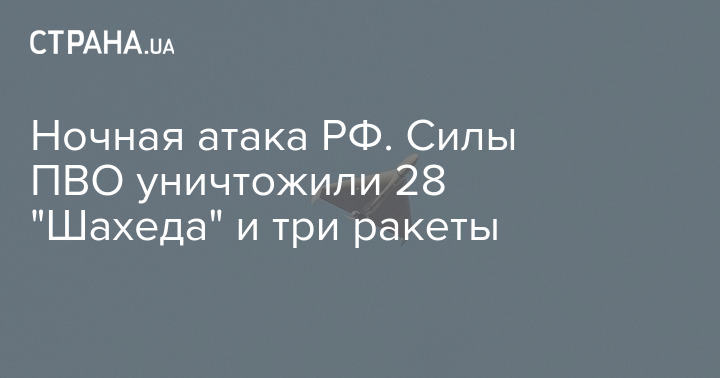 Ночная атака РФ. Силы ПВО уничтожили 28 "Шахеда" и три ракеты