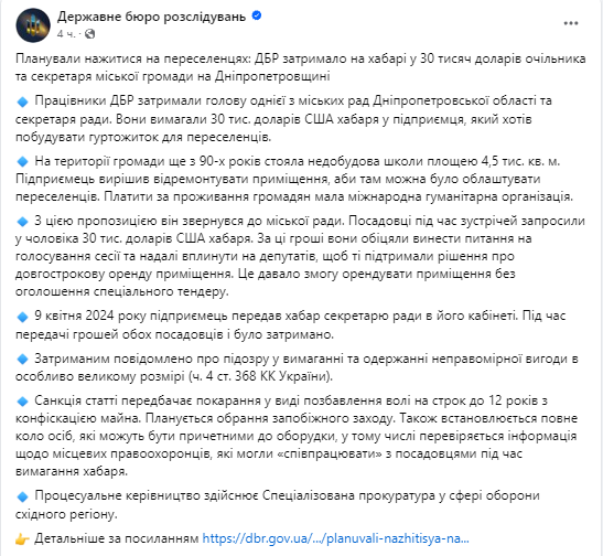 Об этом сообщает ГБР.