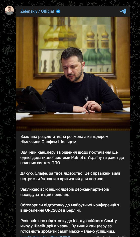 16:37 Зеленский подтвердил, что Германия передает Украине еще одну систему "Пэтриот".
