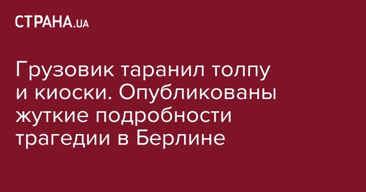 Грузовик таранил толпу и киоски. Опубликованы жуткие подробности трагедии в Берлине