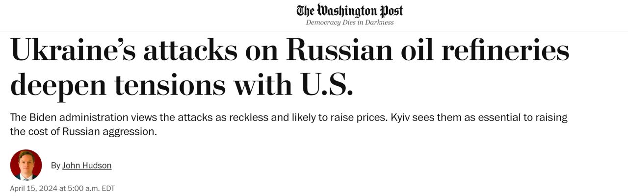 Американские чиновники анонимно рассказали, что дело не только в том, что удары по российским НПЗ могут увеличить цены и инфляцию, чего Байден не хочет в год выборов. Но также рост цен на энергоносители "рискует ослабить европейскую поддержку помощи Украине".