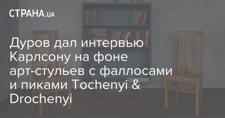Дуров дал интервью Карлсону на фоне арт-стульев с фаллосами и пиками Tochenyi & Drochenyi