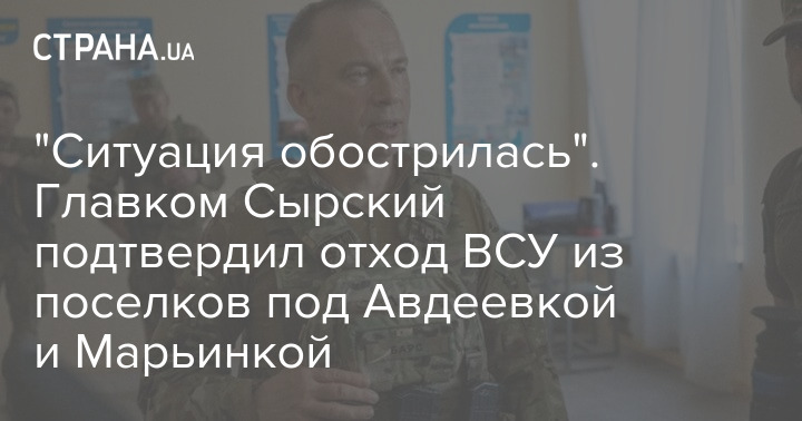 Сырский также подтвердил отступление украинских войск из Бердычей и Семеновки под Авдеевкой, а еще из Новомихайловки под Марьинкой.