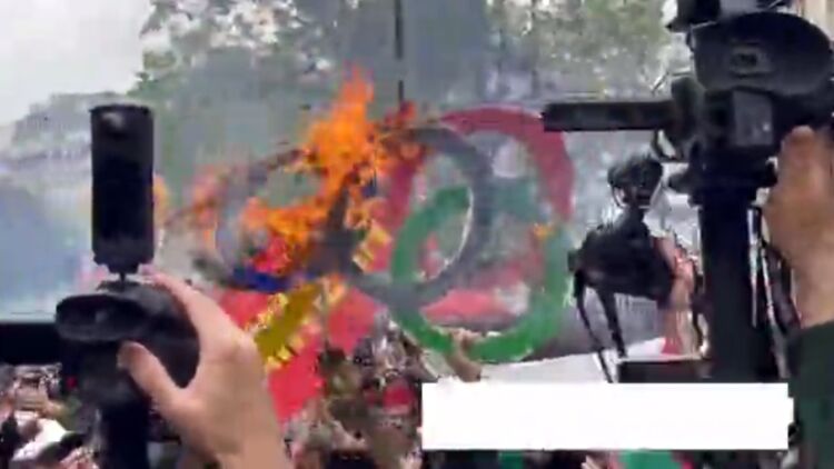 В Париже протестующие сожгли "олимпийские кольца", протестуя против летней Олимпиады, которая пройдет во Франции.
