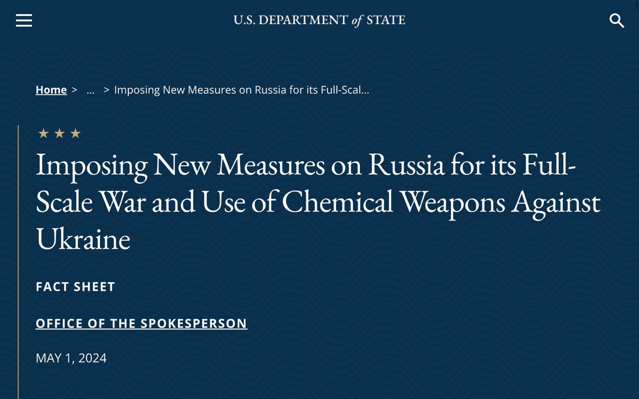 Госдеп заявляет, что россияне неоднократно использовали хлорпикрин против ВСУ, нарушив Конвенцию о химическом оружии.
