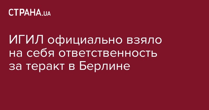 Группировка "Исламское государство" (ИГ) во вторник взяла на себя ответственность за теракт на рождественской ярмарке в Берлине. Наезд на рождественскую ярмарку в центре Берлина 19 декабря совершил "воин "Исламского государства".