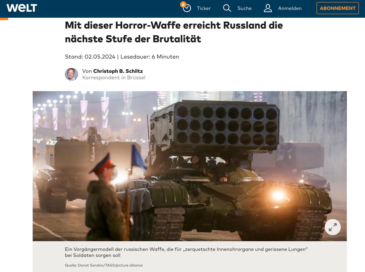 Немецкий журнал Die Welt сообщает, что Россия начала использовать на фронте новую огнеметную систему "Дракон".