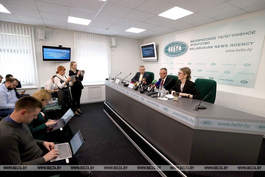 На пресс-конференции в Минске Шмидт заявил, что вынужденно покинул Польшу, потому что "подвергался преследованиям и угрозам за самостоятельную политическую позицию". Он выразил "несогласие с политикой и действиями властей" Польши, которые, по его мнению, под влиянием США и Великобритании "ведут страну к войне". А президента Беларуси Александра Лукашенко назвал "очень мудрым руководителем".