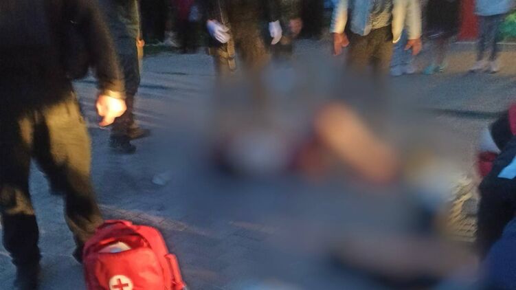 На кадрах можно увидеть, что на тротуаре лежат двое людей – полицейский и другой мужчина. Около полицейского столпились люди, ко второму пострадавшему, который весь в крови, практически никто не подходит.