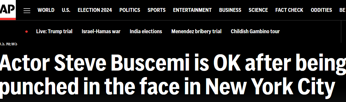 "Стив Бушеми подвергся нападению в центре Манхэттена, это еще одна жертва случайного акта насилия в городе. Он в порядке, и он ценит все добрые пожелания", - заявил публицист актера, слова которого цитирует AP.