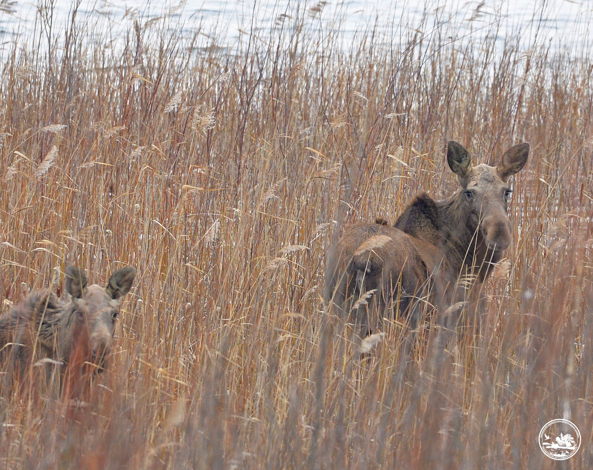 Также заповедник опубликовал фото лосей, скорее всего, самки с лосенком.