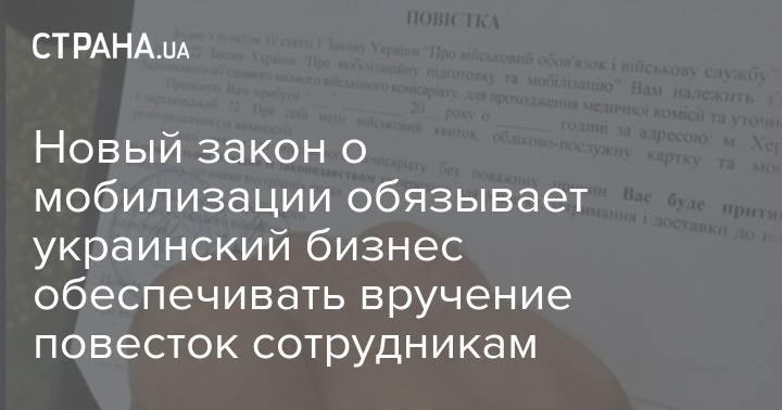 Новый закон о мобилизации обязывает украинский бизнес обеспечивать вручение повесток сотрудникам