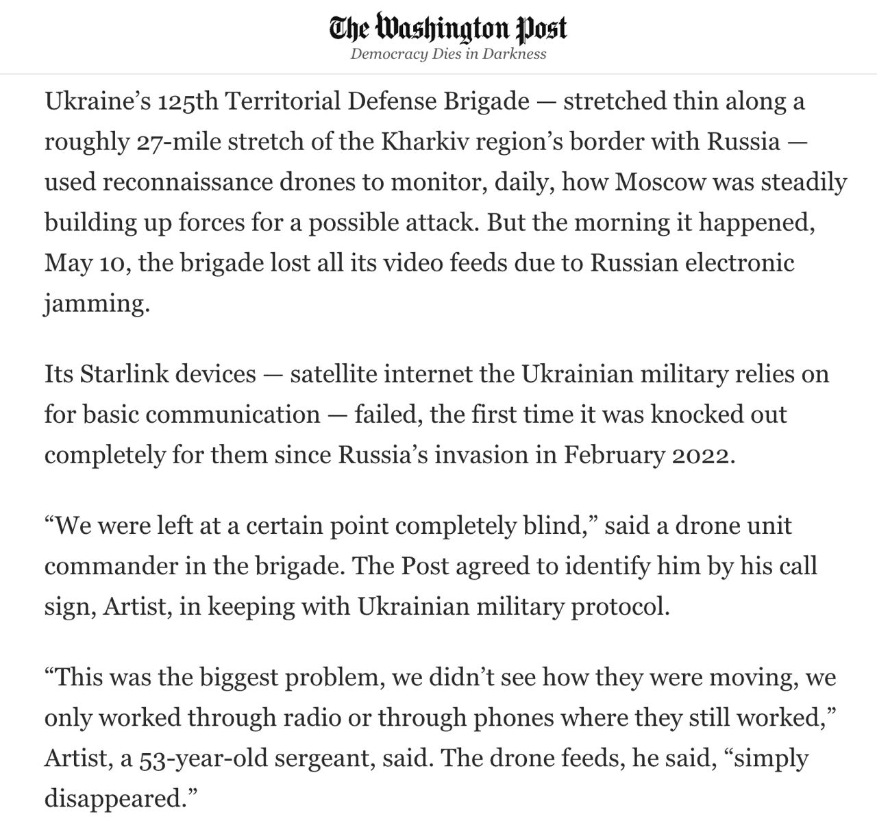 Украинские Starlink перестали работать в утро начала наступления РФ под Харьковом.