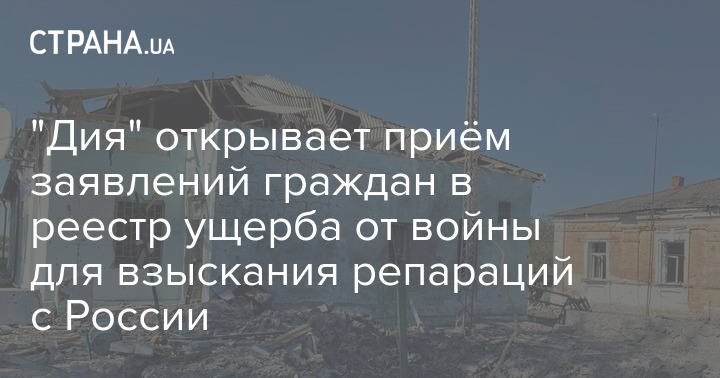 Мобильное приложение "Дия" предлагает украинцам, чьё жильё пострадало от боевых действий после вторжения РФ 24 февраля 2022 года, подать заявление в международный реестр убытков, сведения из которого будут использованы для взыскания репараций с Москвы.