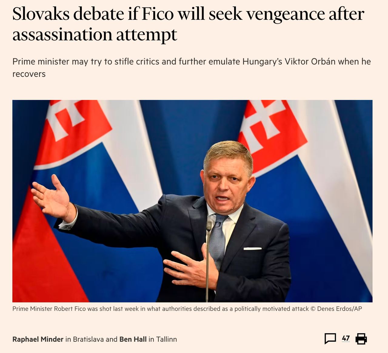 В Словакии идет дискуссия, начнет ли Фицо после выздоровления ужесточать политику и укреплять власть -FT