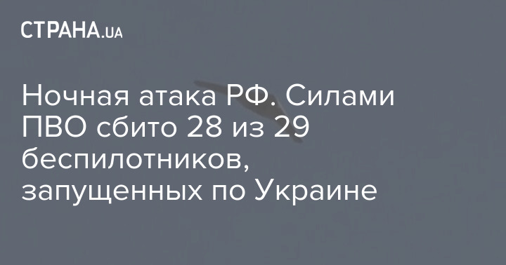 Ночная атака РФ. Силами ПВО сбито 28 из 29 беспилотников, запущенных по Украине