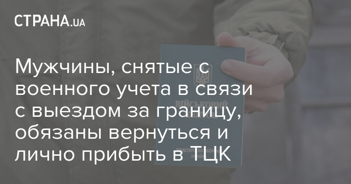 Мужчины, снятые с военного учета в связи с выездом за границу на срок более 3 месяцев, обязаны вернуться в Украину и лично прибыть в ТЦК до 16 июня для возвращения на учет.