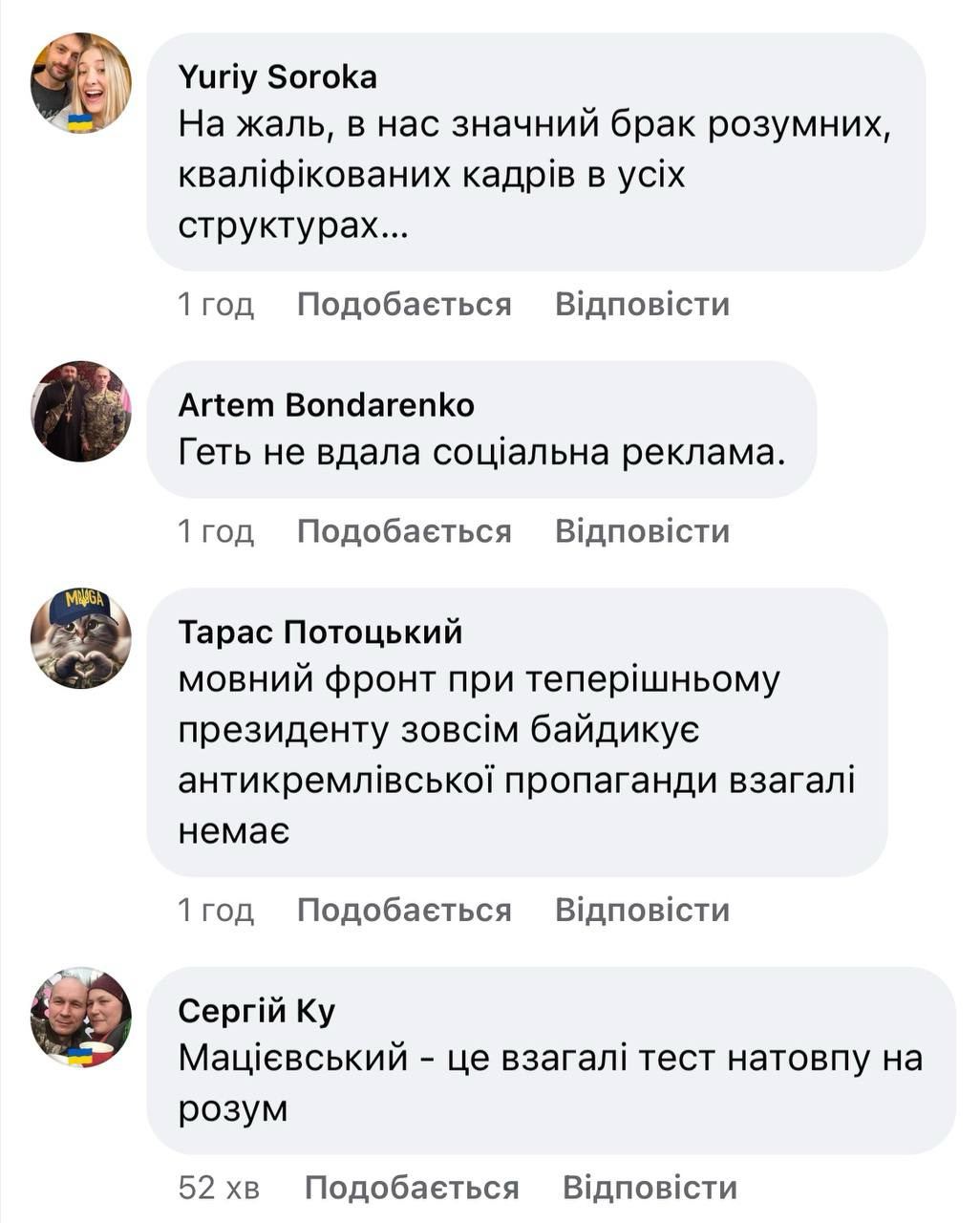 Один из комментаторов отмечает, что, вероятно, для размещения этой рекламы не было получено разрешение семьи Александра Мациевского, из-за чего можно подать иск в суд.